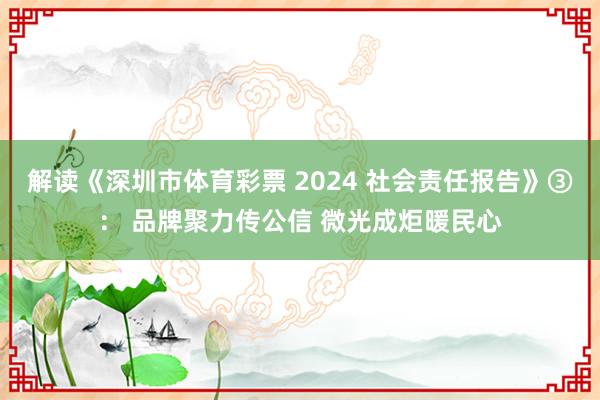 公益之路,行则将至;责任之心,恒则方成。2024年,深圳体彩以品牌建设与公益实践诠释“公益体彩、责任为先”的核心价值。站在新起点,深圳体彩将持续深化品牌与公益的融合发展,以创新传播、务实举措、多维度协同推动责任彩票高质量发展,坚守初心、勇担使命,让每一份购彩热情都转化为公益力量,让每一束“微光”都汇聚成照亮美好生活的火炬,在公益为民与体育强国的道路上笃定前行。