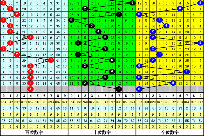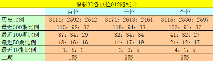 个位分析:该位最近10期开出了4个0路号码、1个1路号码、5个2路号码,2路号码热出,1路号码走冷。本期排除2路号码,参考号码:0。
