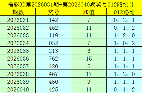 上期回顾:福彩3D第2026040期开出奖号:425。奖号为组六形态,与试机号没有同,奇偶比为1:2,大小比为1:2,012路比为0:1:2,和值为11,米兰跨度为3。