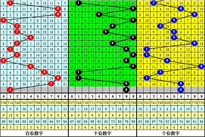 号码频次分析:最近10周星期日各号码组选出现频次分别为:号码8出现7次,号出现6次,号出现5次,号码3、7出现4次,号码1、5出现3次,号码0、2、4、9出现2次,号码6出现1次,本期注意最热四码:1378中包含胆码,预计奖号不会全部分布在最冷四码:2469中。