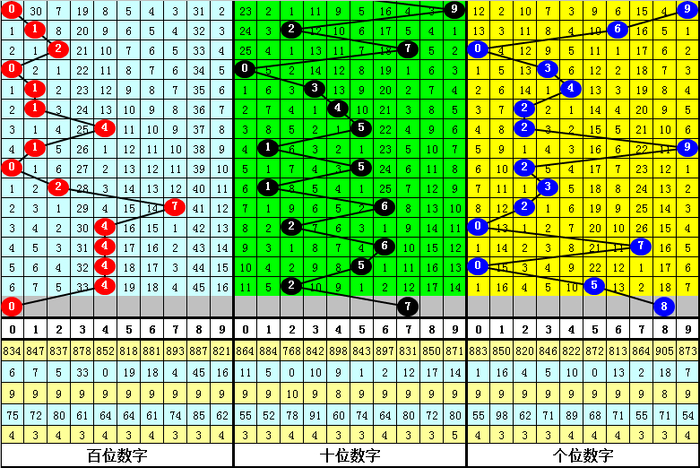 2、奖号质合比分别开出:1:2、1:2、3:0、0:3、2:1、1:2、1:2、2:1、2:1,总质合比开出13:14,其中有3期奖号质合比和上期奖号质合比相等;