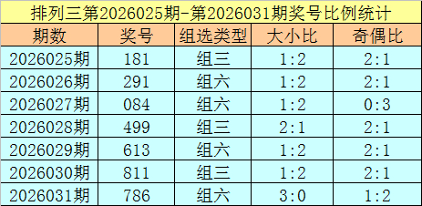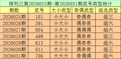 排列三第2026031期回顾:奖号786,奇偶比1:2,大小比3:0,和值21,类型:组六。