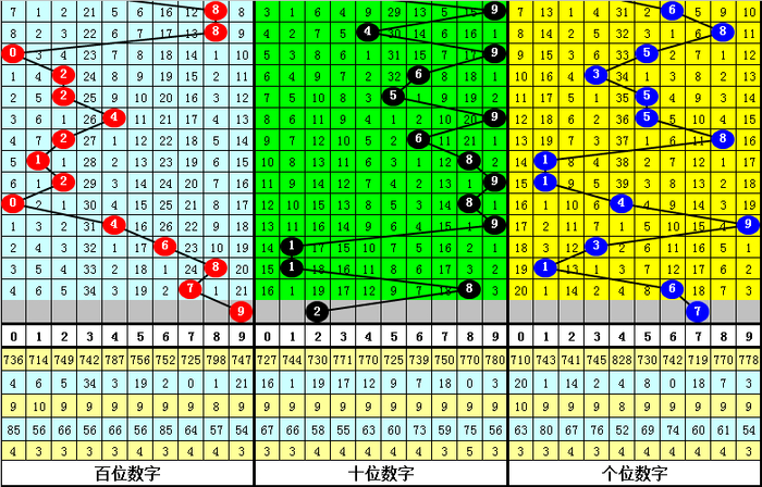 从上表可以看出,组选号码678开出之后,出现次数最多的三个号码分别为:439,本期防这三码中落号;出现次数最少的三个号码分别为:627,本期预计这三个号码不会同时出现,本期杀一码:6。